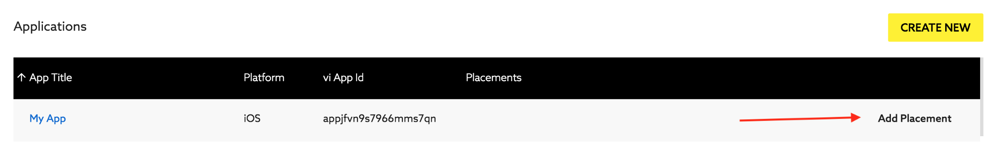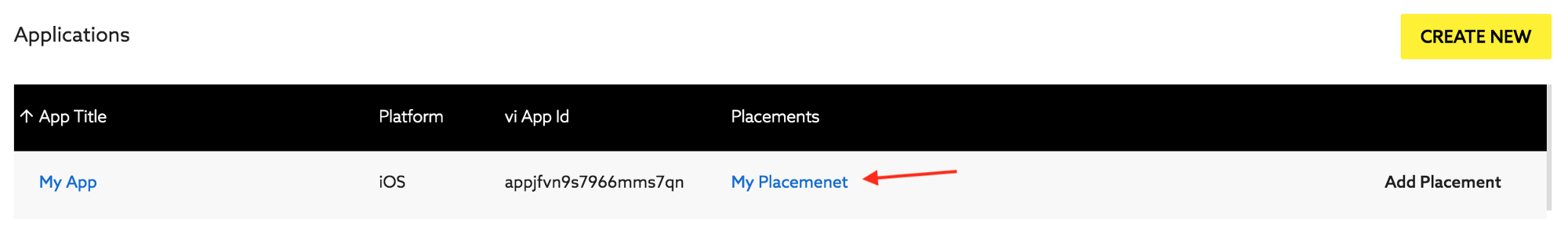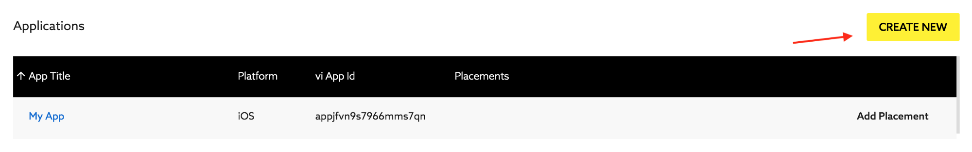 When you log in to your vi dashboard you will see a list of your apps. If you donât have apps create new one: